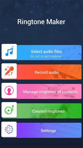 Ringtone maker - wycinarka mp3 to darmowy program dla Androida, który należy do kategorii Muzyka-radio i został opracowany przez dyktafon. Ten program jest dostępny w języku niemieckim, koreańskim, francuskim, włoskim, rosyjskim, portugalskim, japońskim, hiszpańskim, hindi, chińskim, szwedzkim, fińskim, tureckim, arabskim, chińskim, czeskim, duńskim, norweskim, polskim, portugalskim i angielskim.